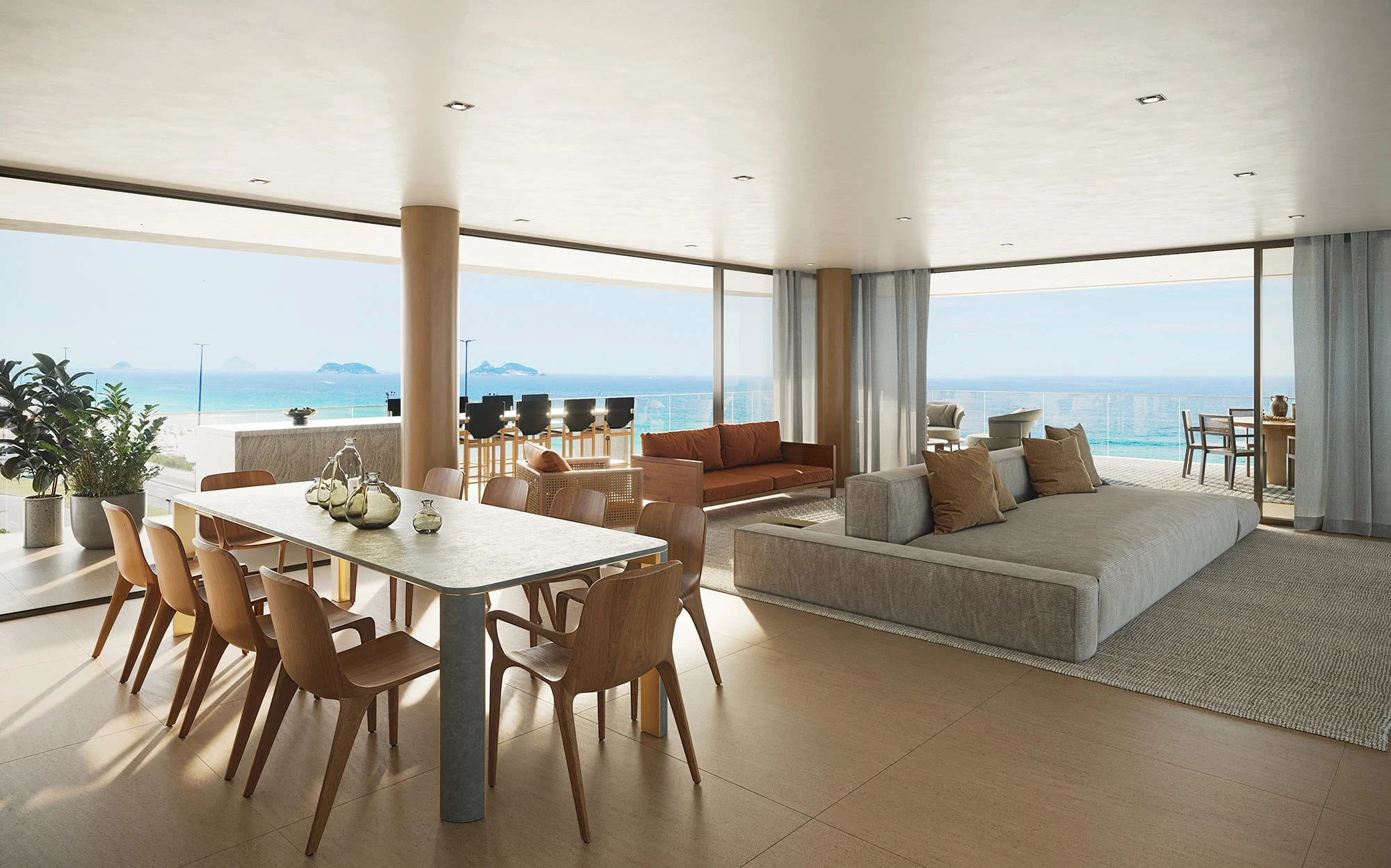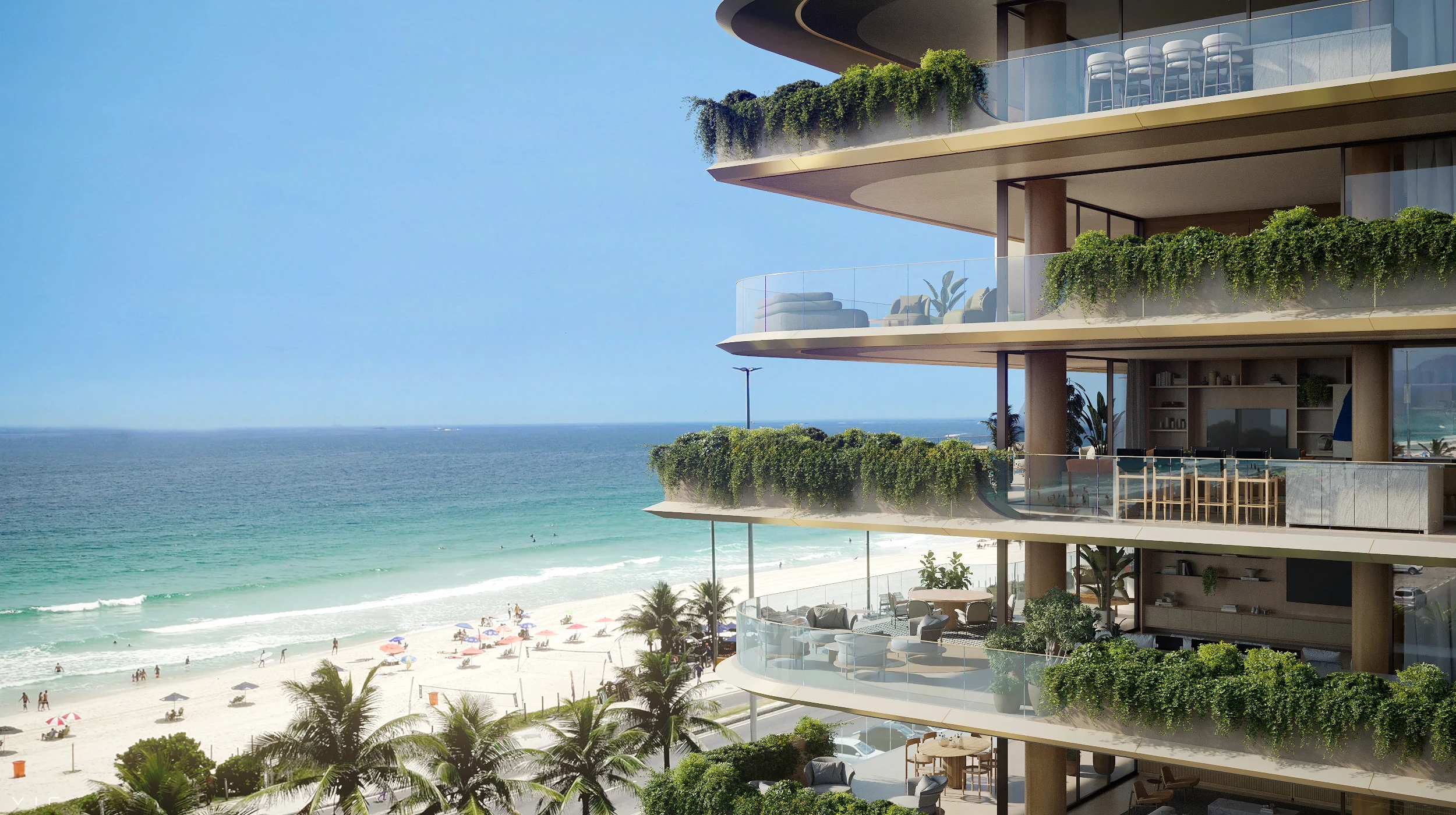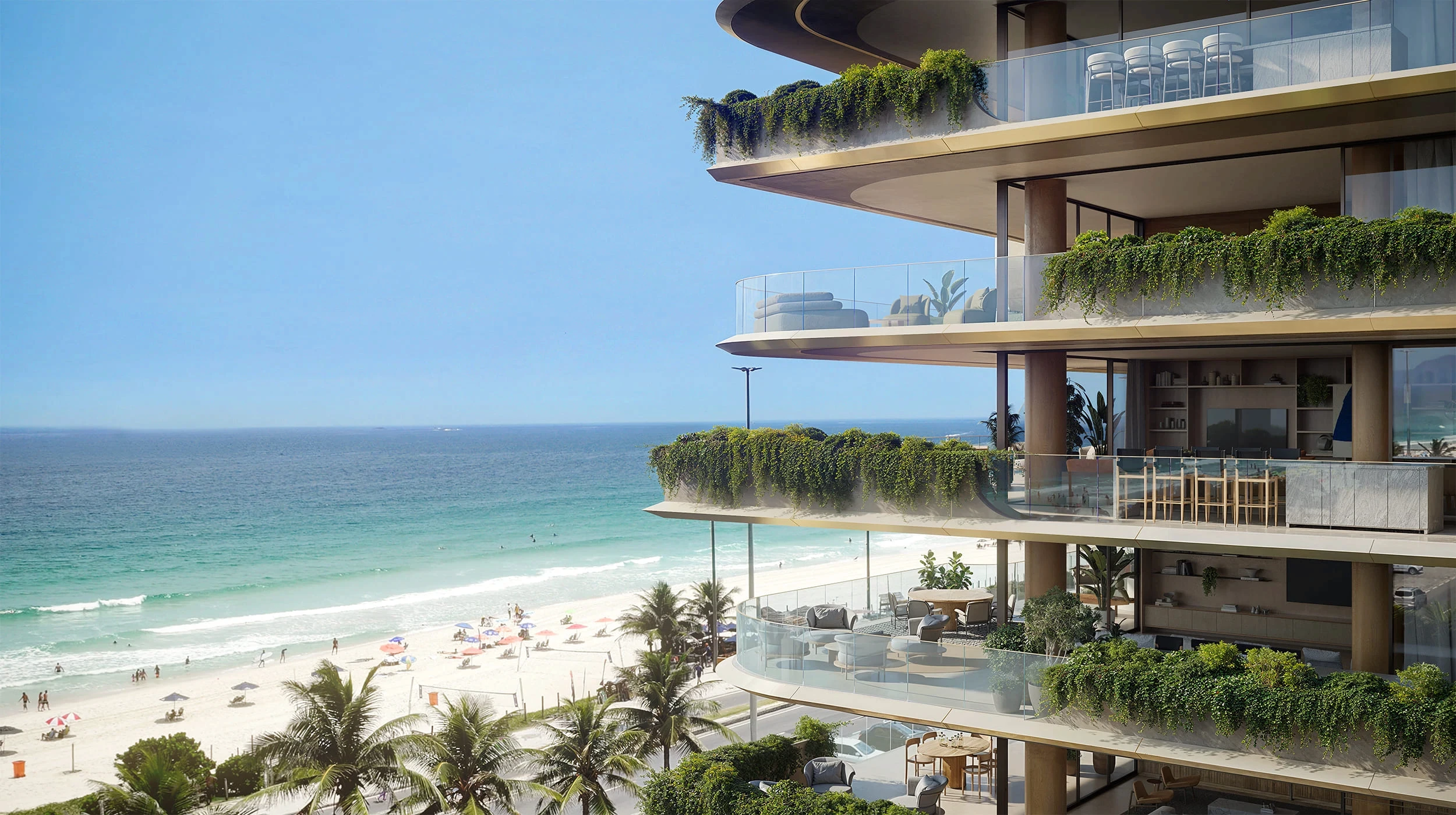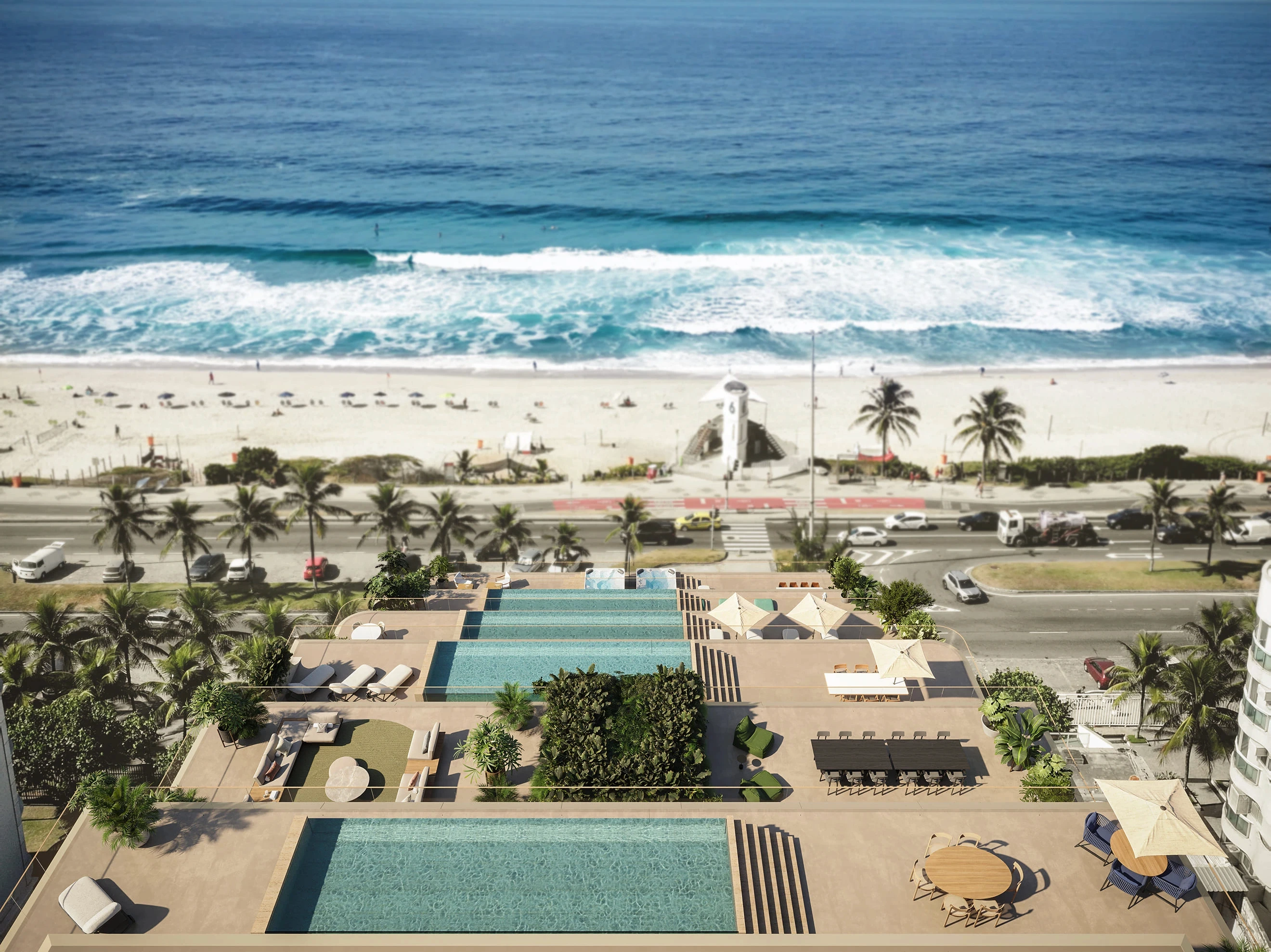 Para isso, foi preciso traduzir, nas renderizações, essa fluidez, de maneira a transparecer essa sensação de leveza e amplitude que o projeto desperta à beira-mar.