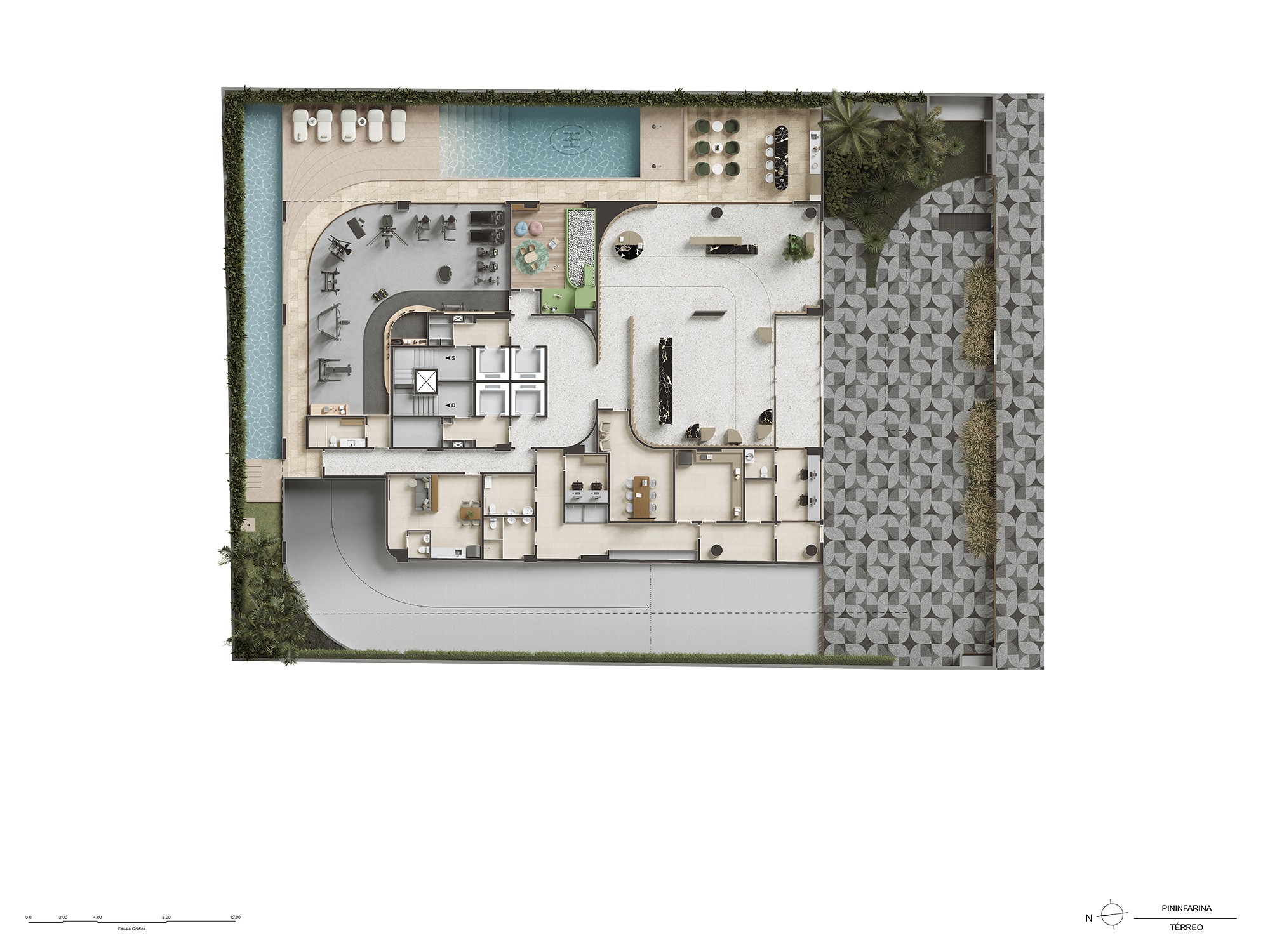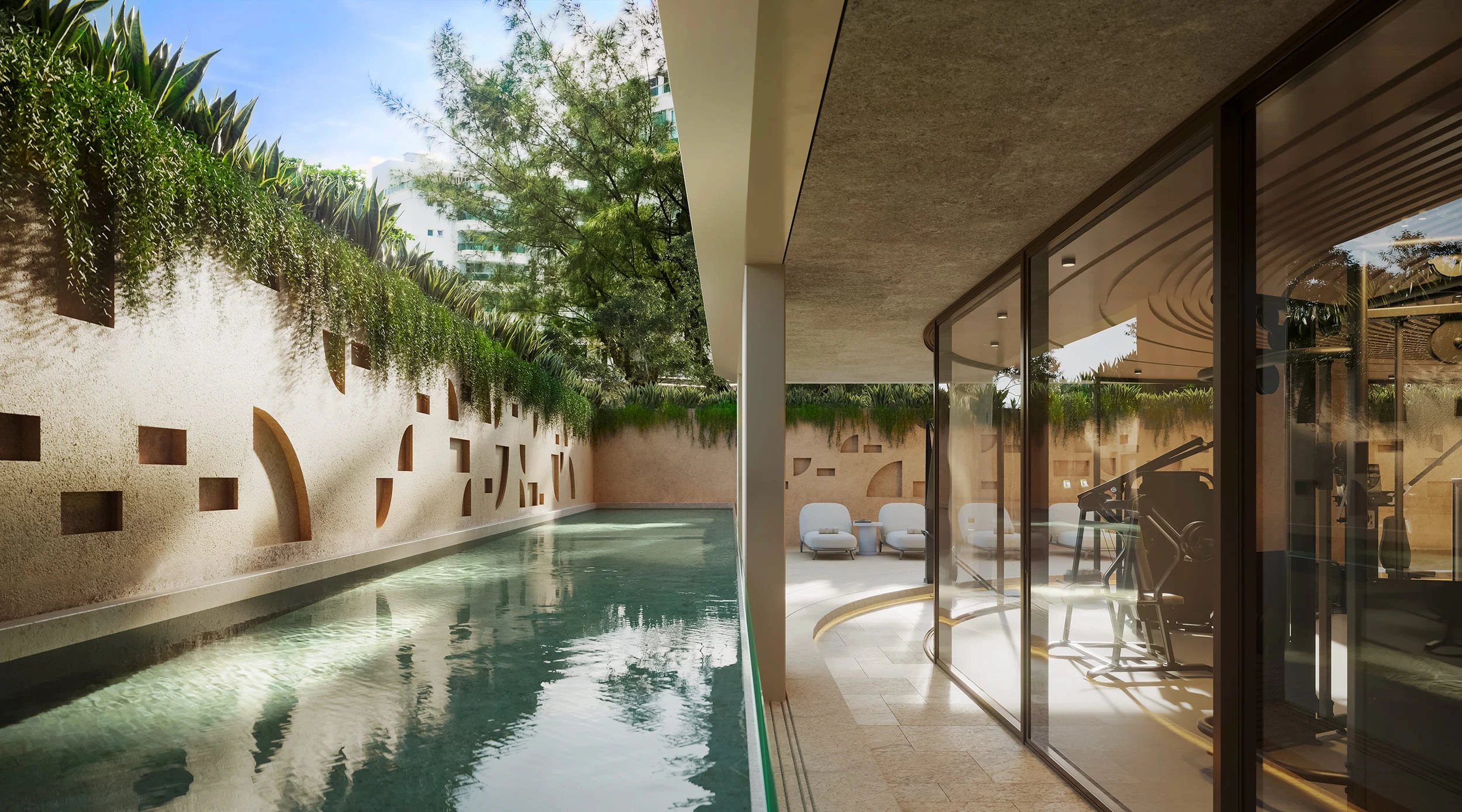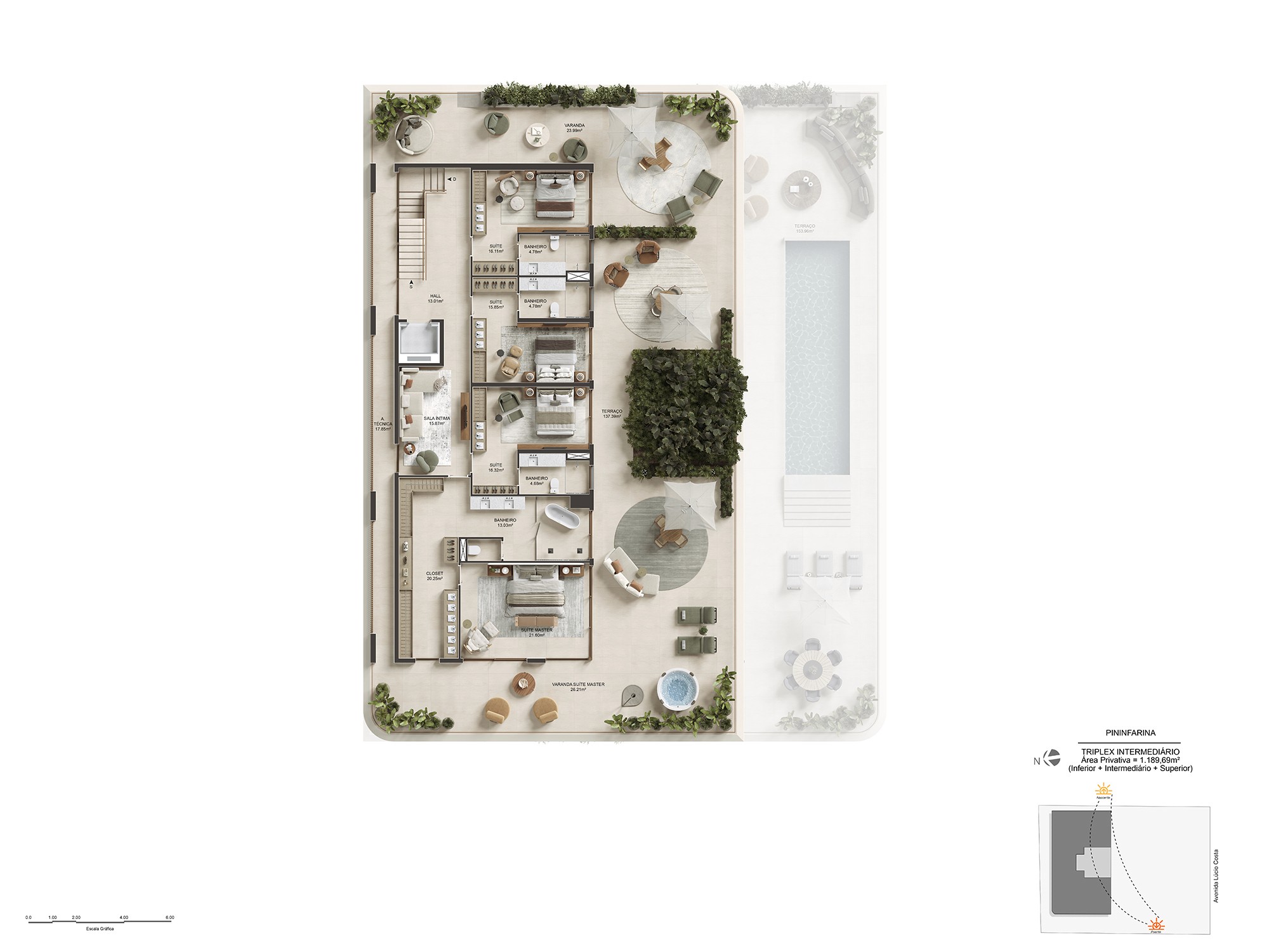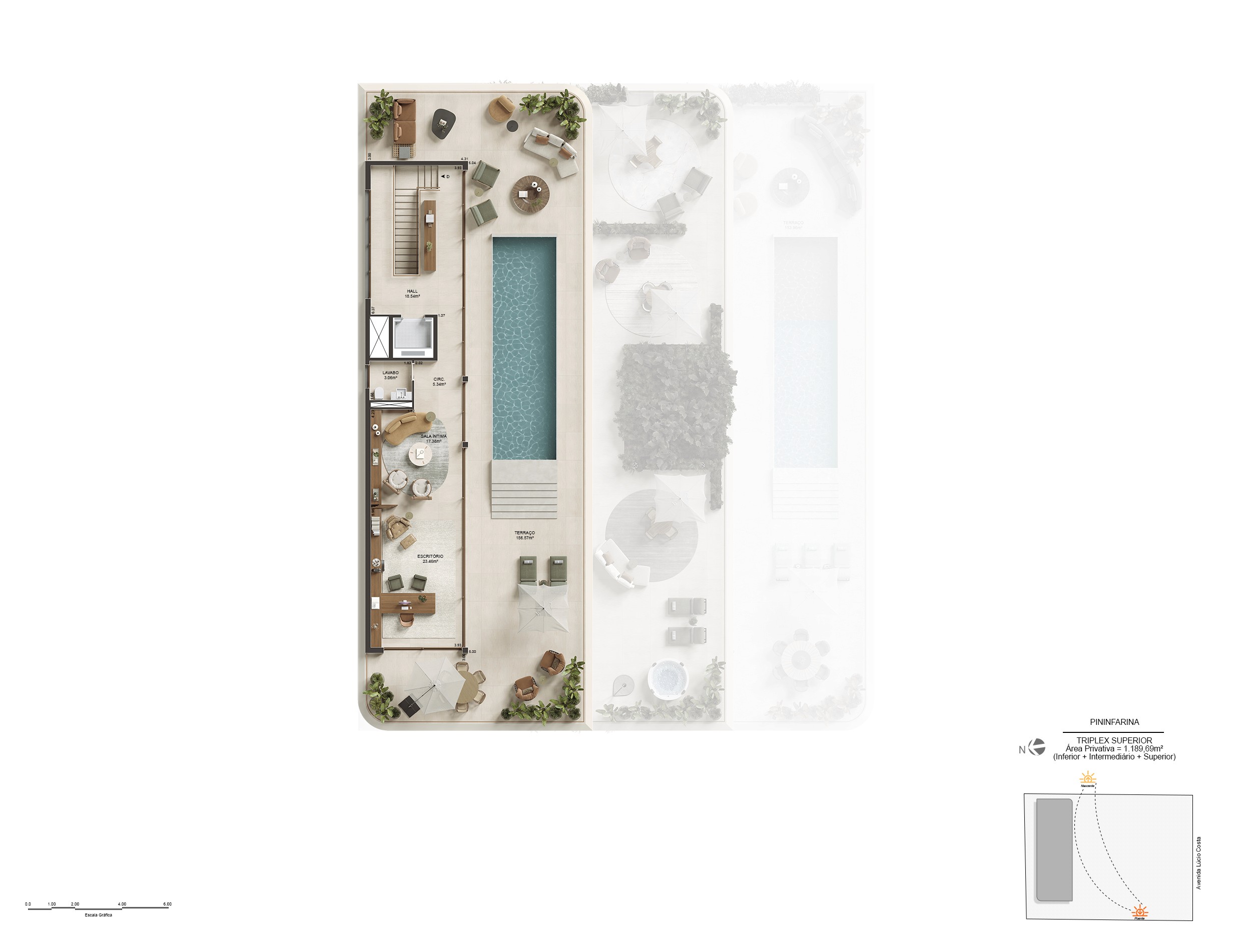 Para isso, foi preciso traduzir, nas renderizações, essa fluidez, de maneira a transparecer essa sensação de leveza e amplitude que o projeto desperta à beira-mar.