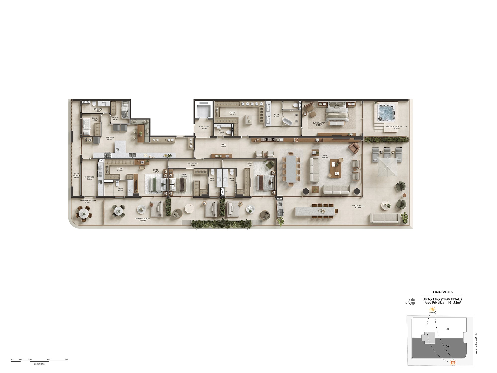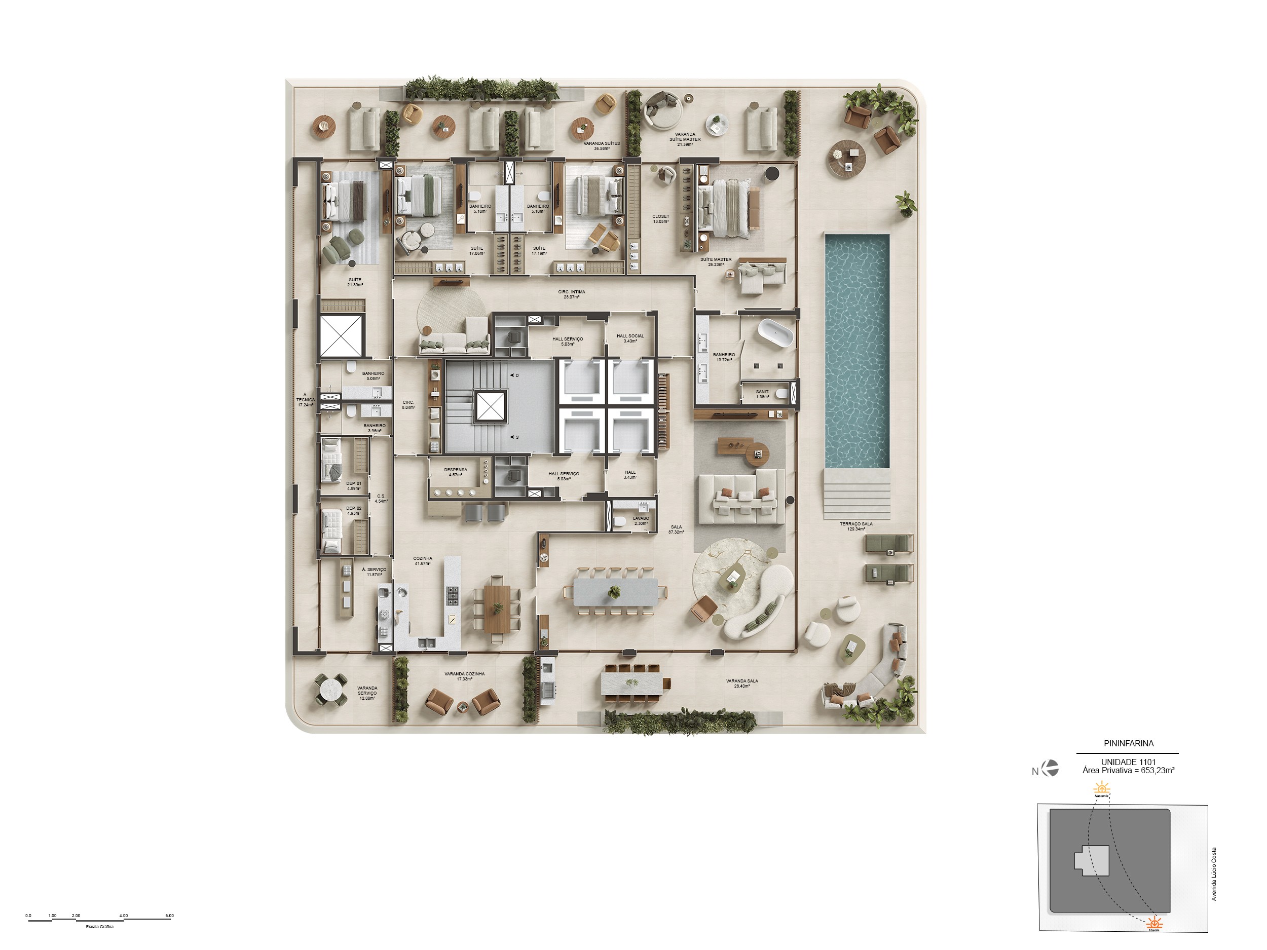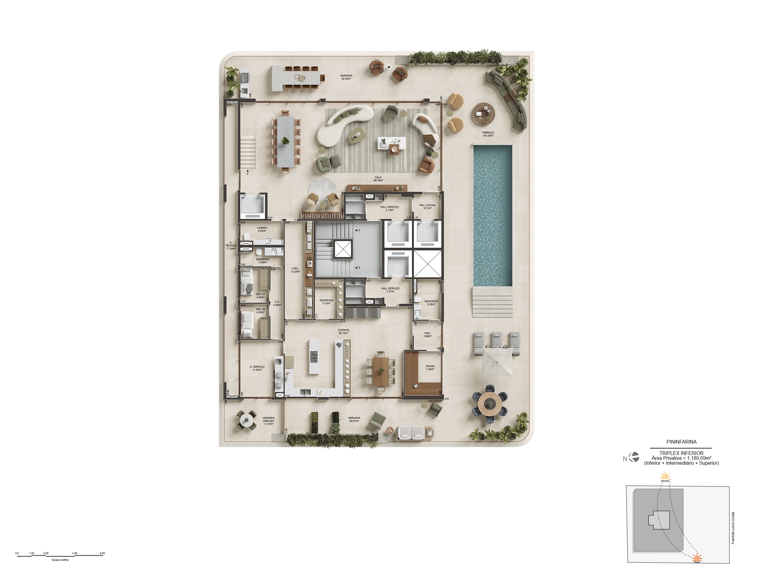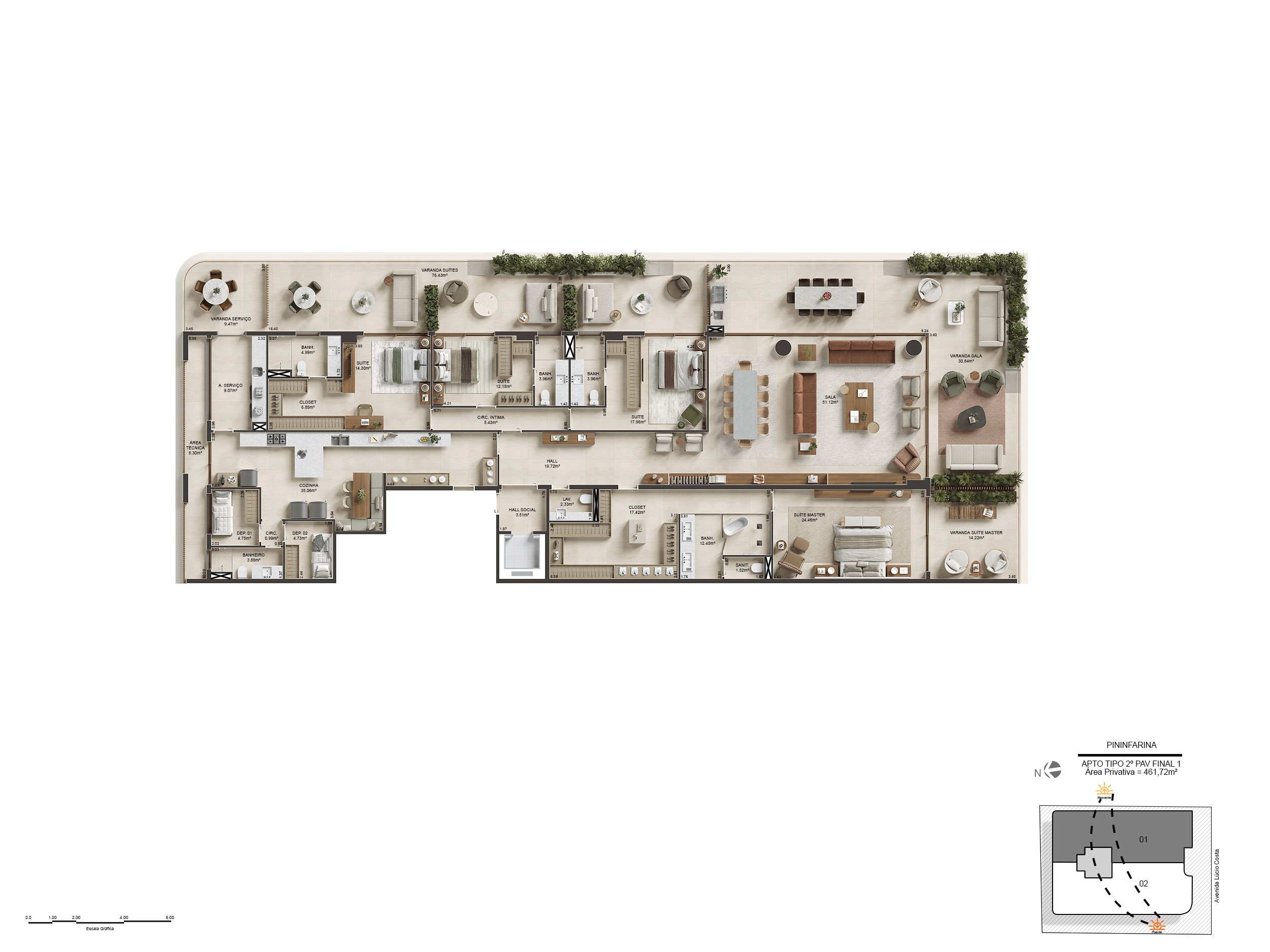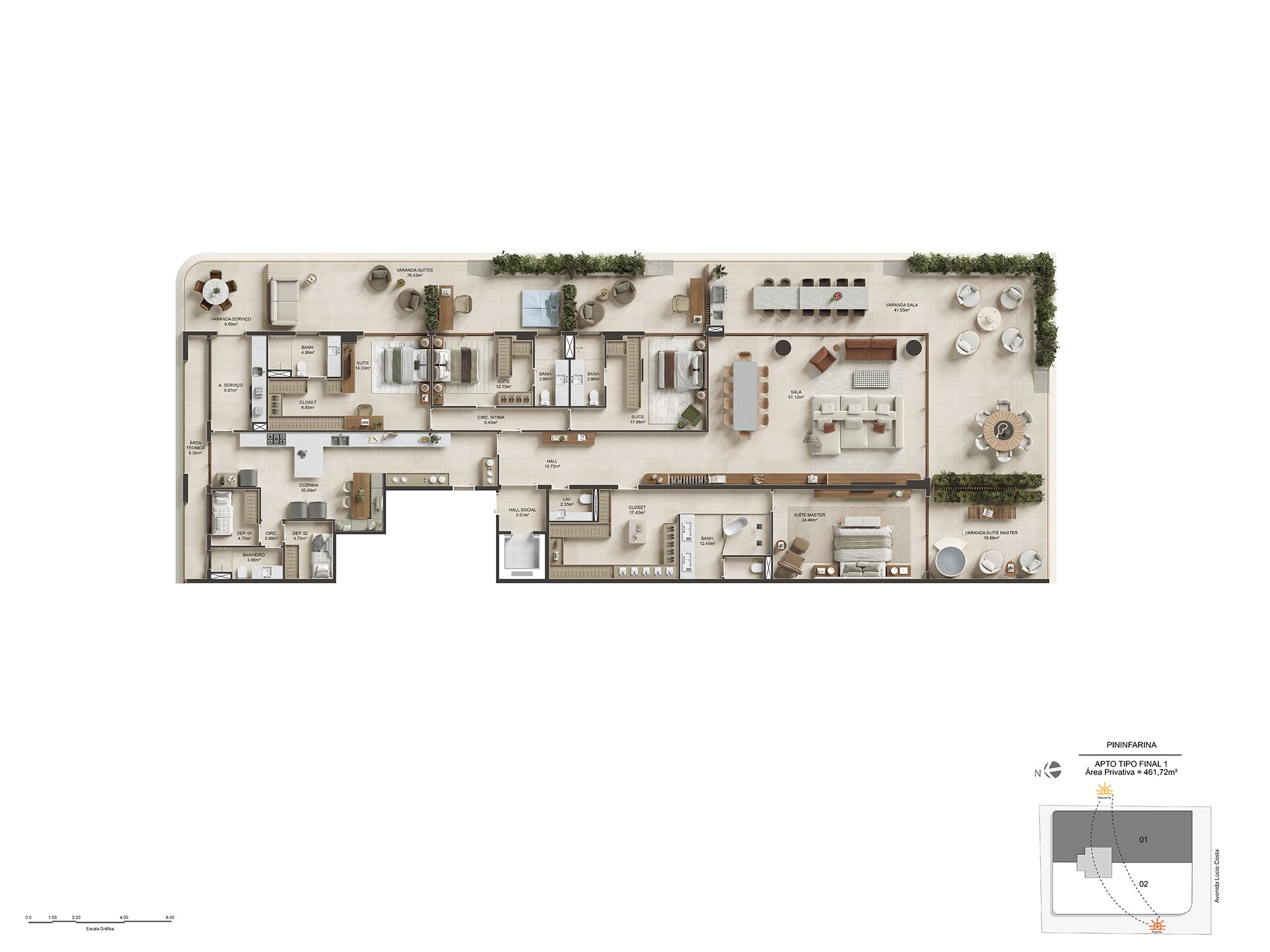 Para isso, foi preciso traduzir, nas renderizações, essa fluidez, de maneira a transparecer essa sensação de leveza e amplitude que o projeto desperta à beira-mar.