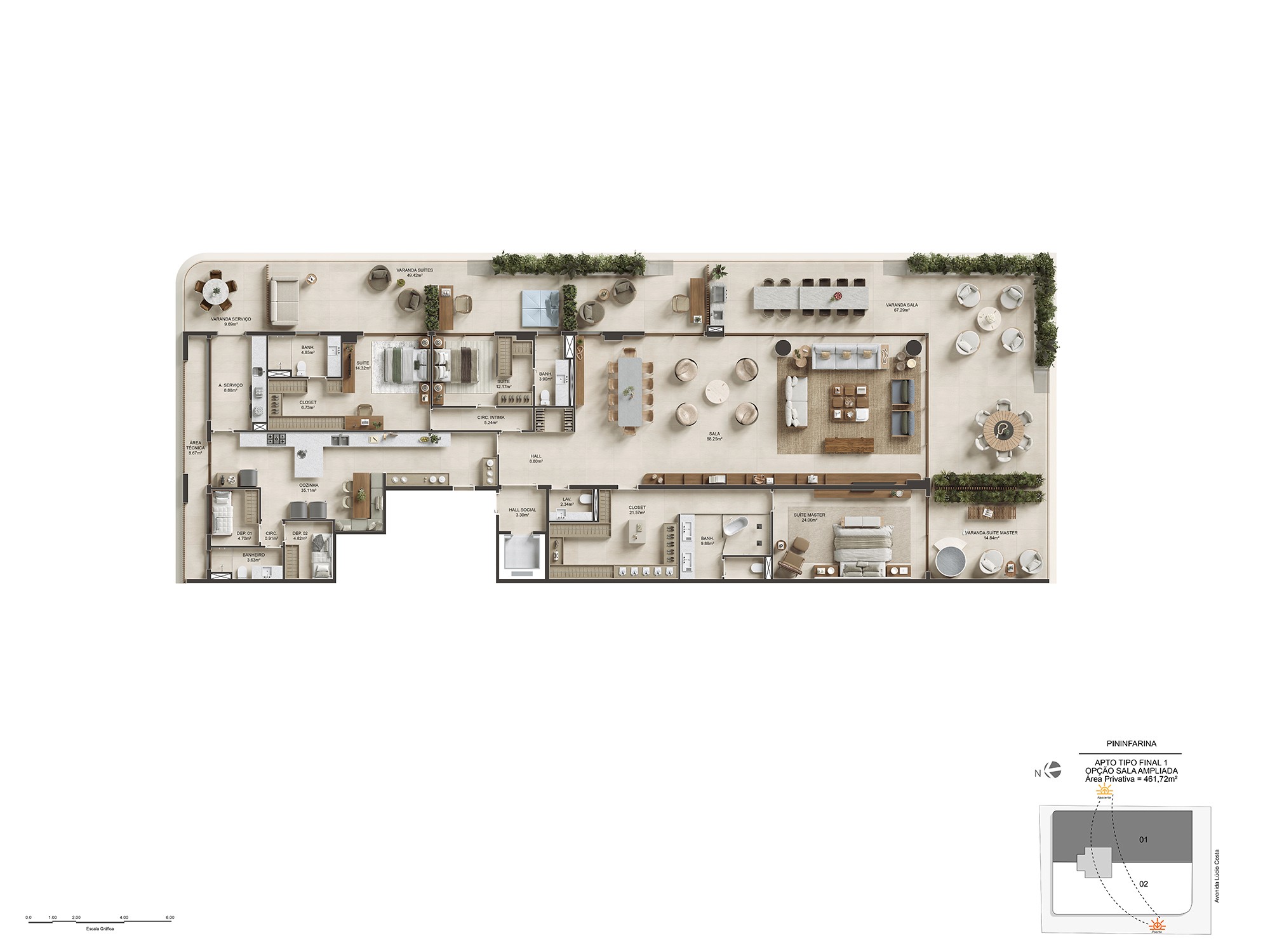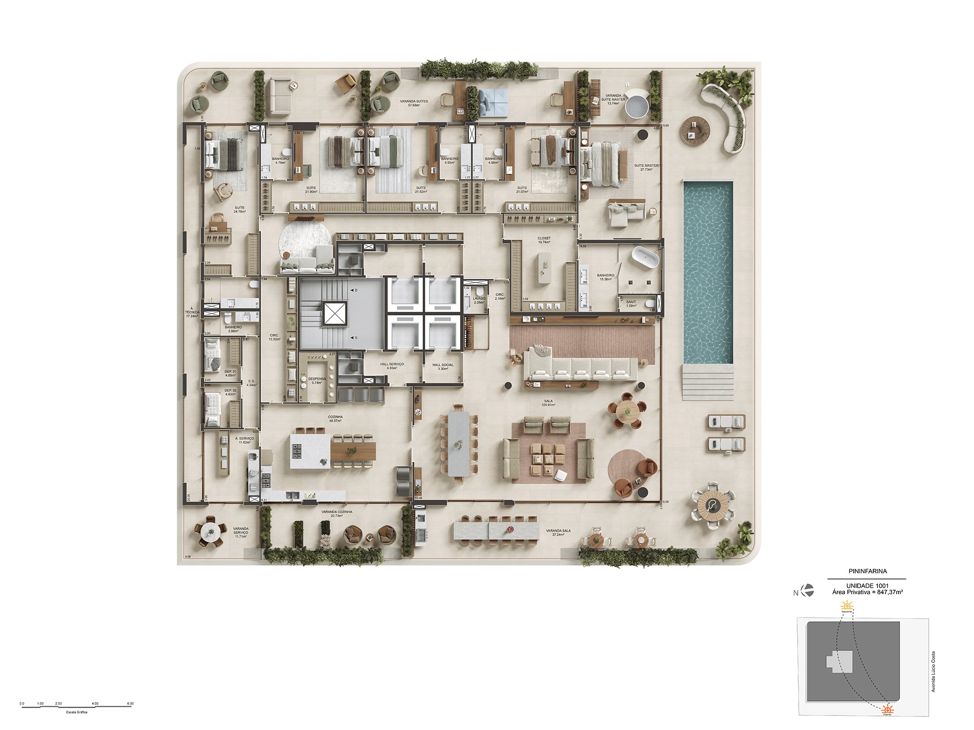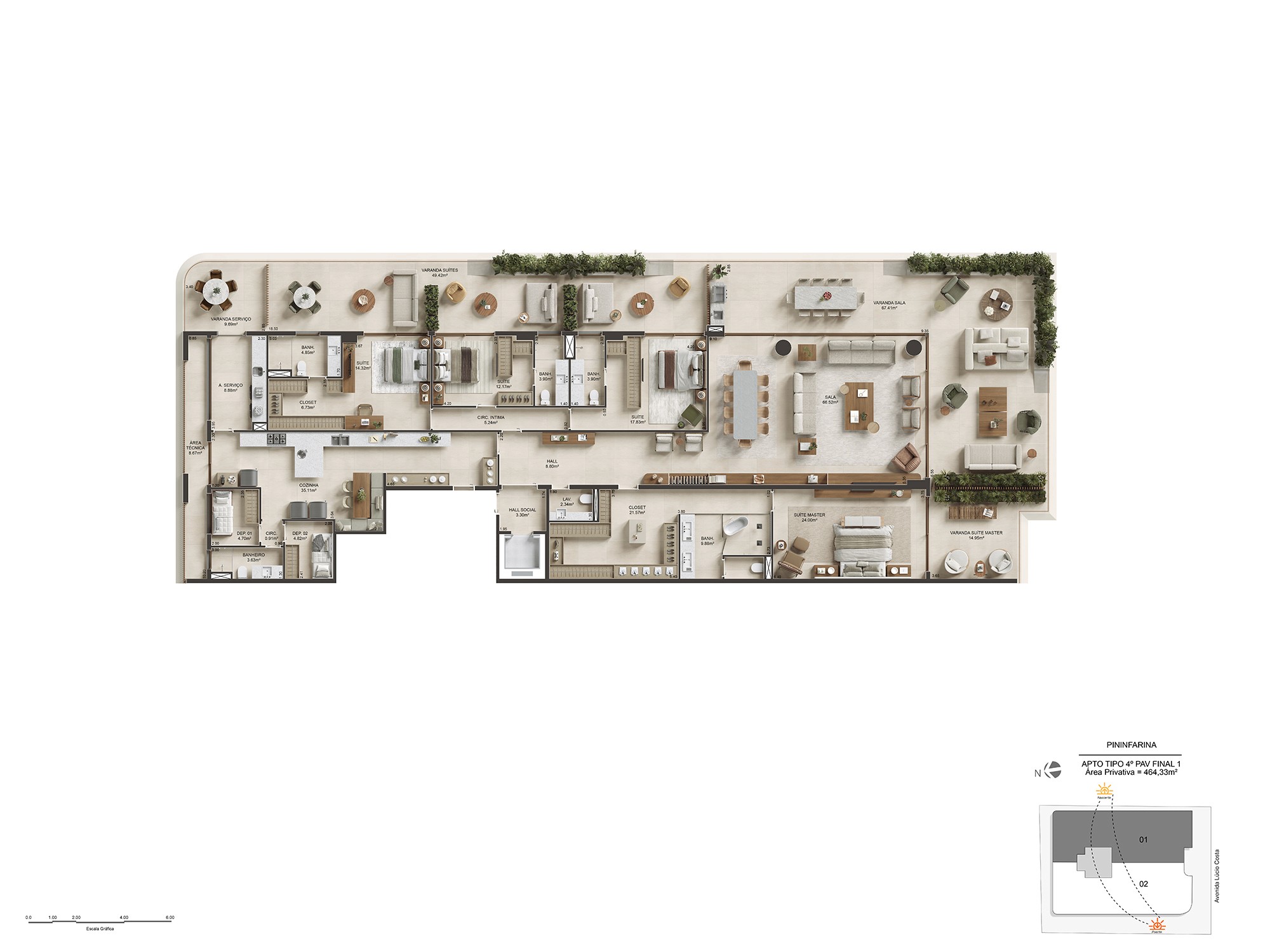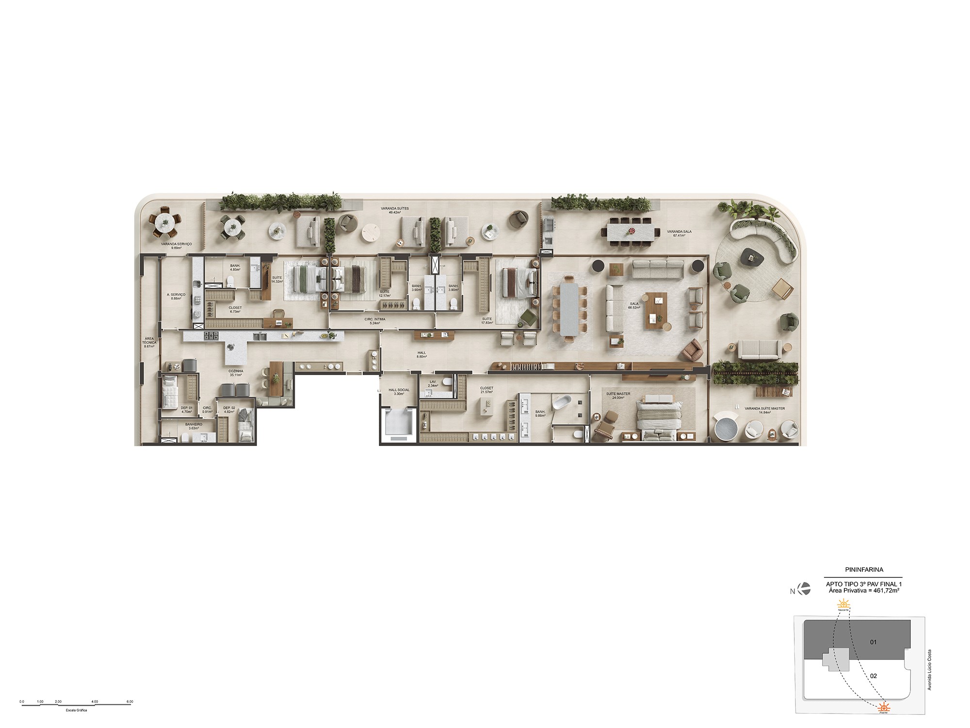 Para isso, foi preciso traduzir, nas renderizações, essa fluidez, de maneira a transparecer essa sensação de leveza e amplitude que o projeto desperta à beira-mar.