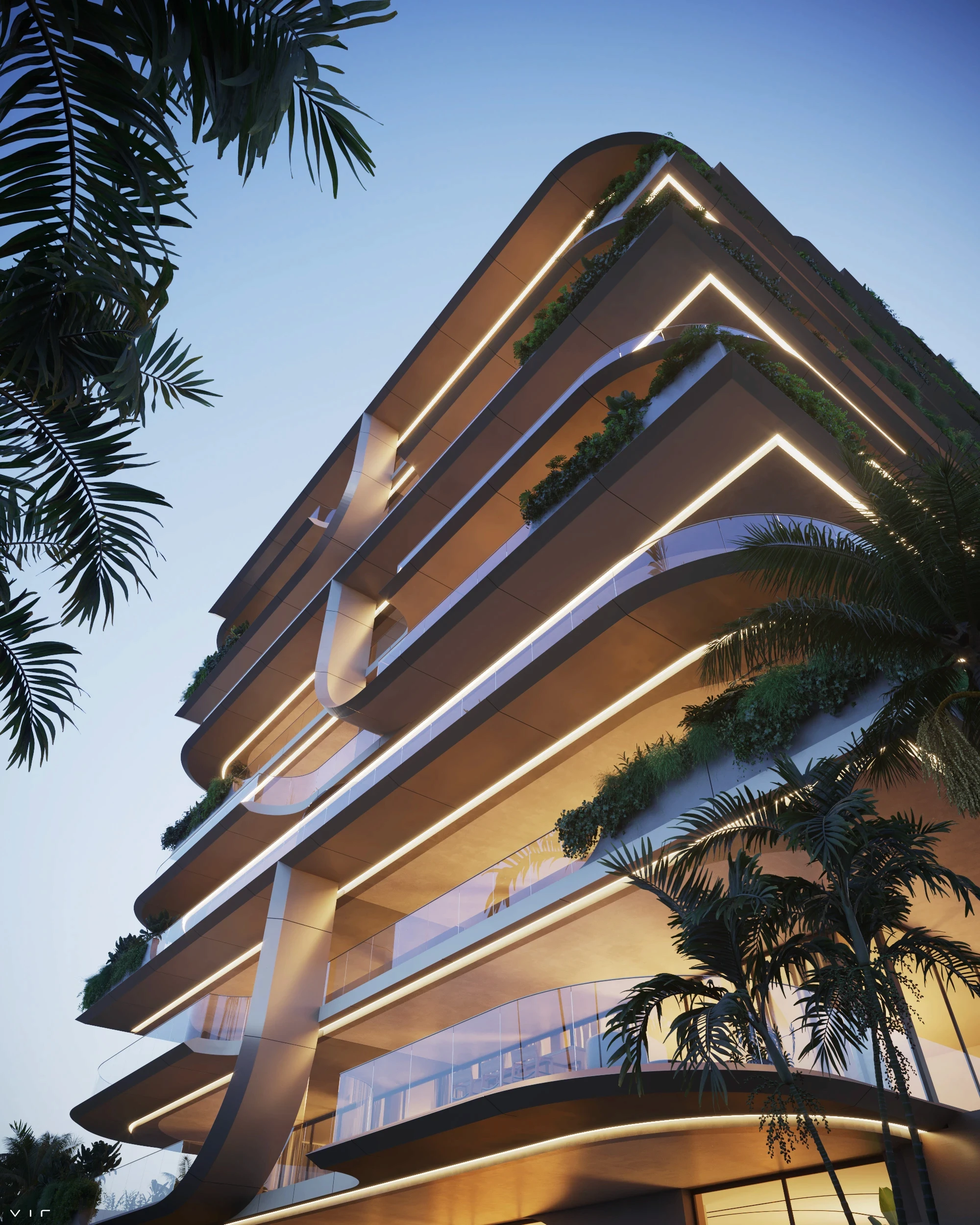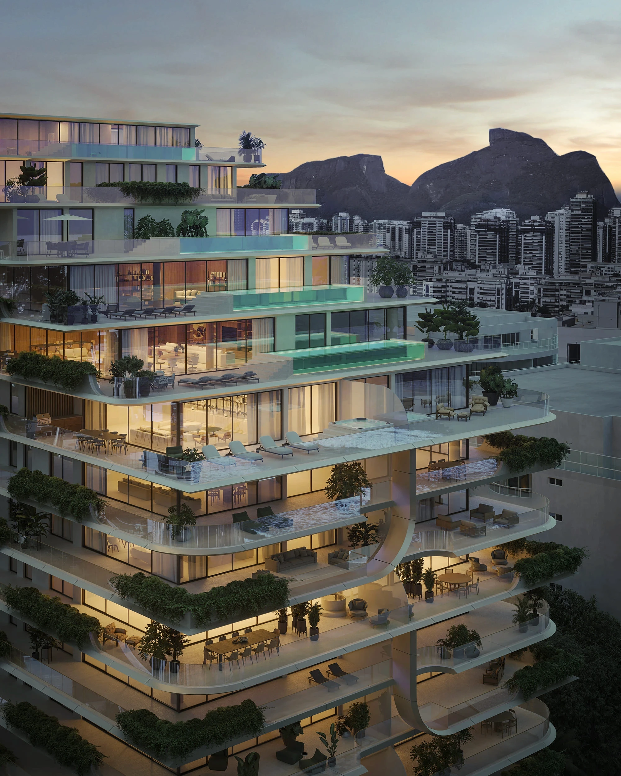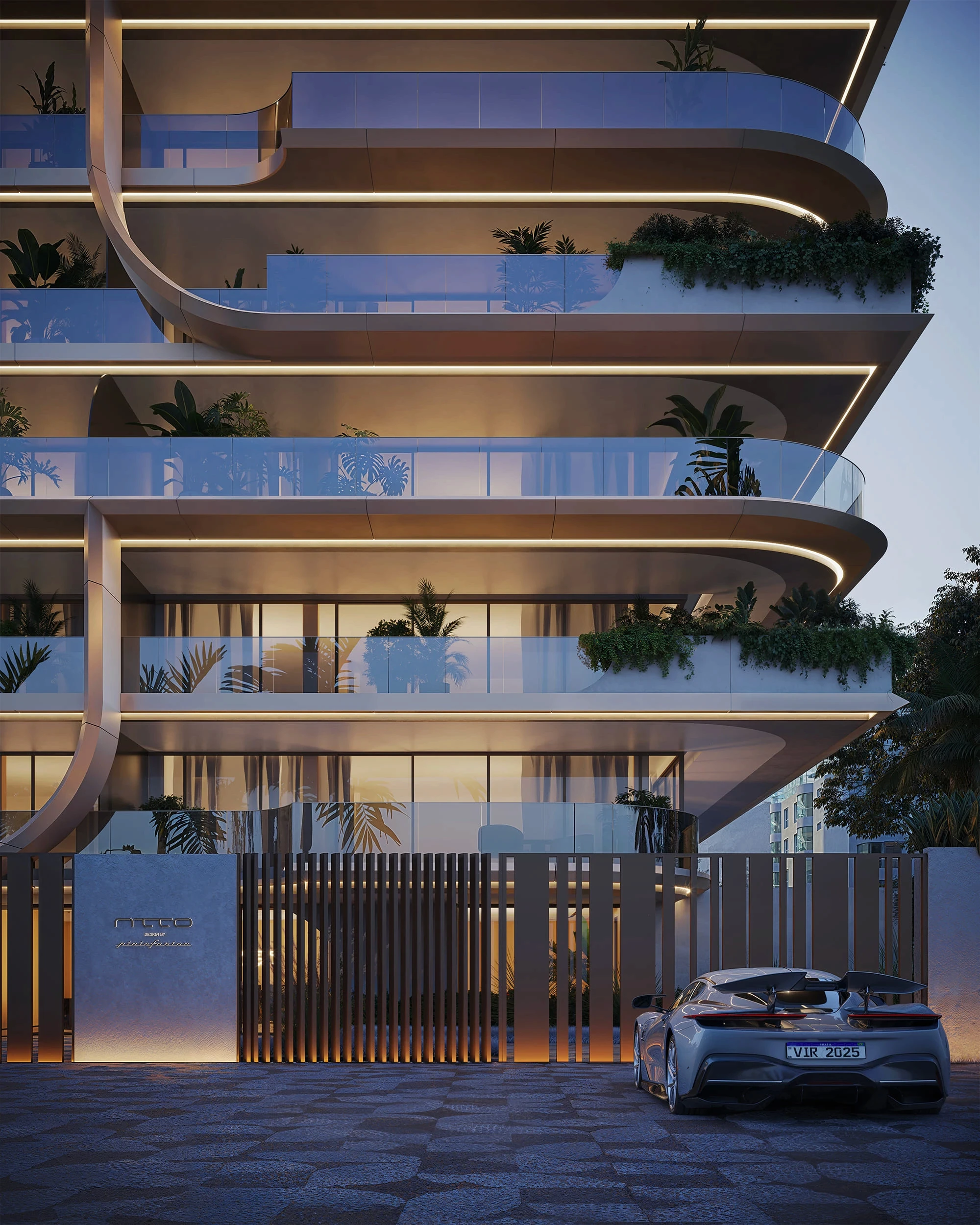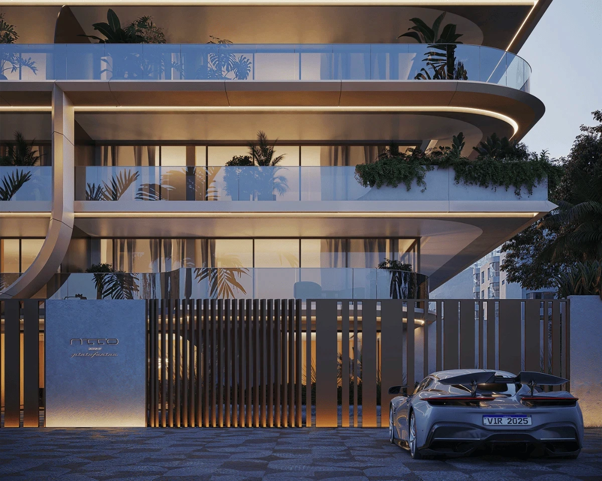 As linhas sinuosas do empreendimento, que são marca registrada do estúdio italiano, transformam a fachada em um tipo de peça escultórica: cada curva parece responder ao movimento natural do vento e da luz.