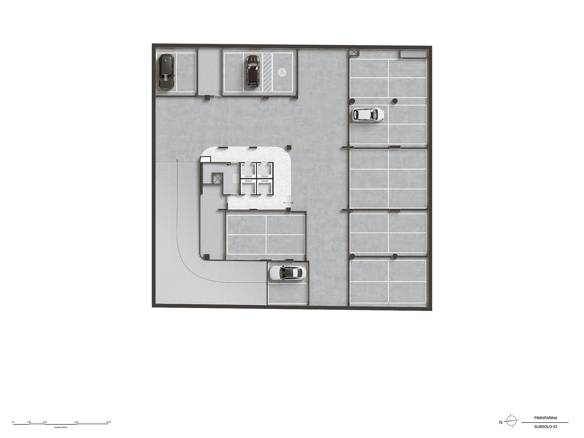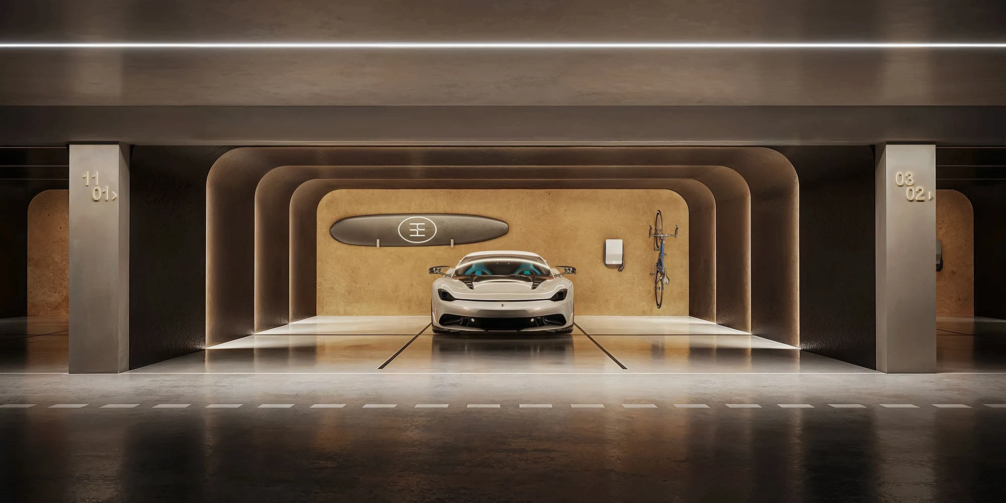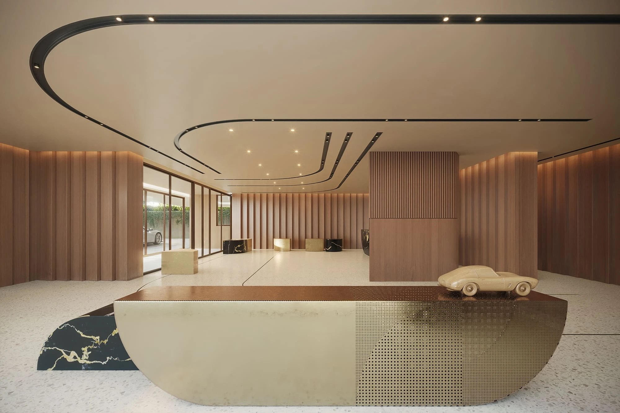 Trabalhamos com enquadramentos que valorizam essa continuidade entre o interior e o exterior, destacando a transparência dos vidros, a plasticidade das curvas e o brilho suave dos materiais metálicos que revestem a estrutura.