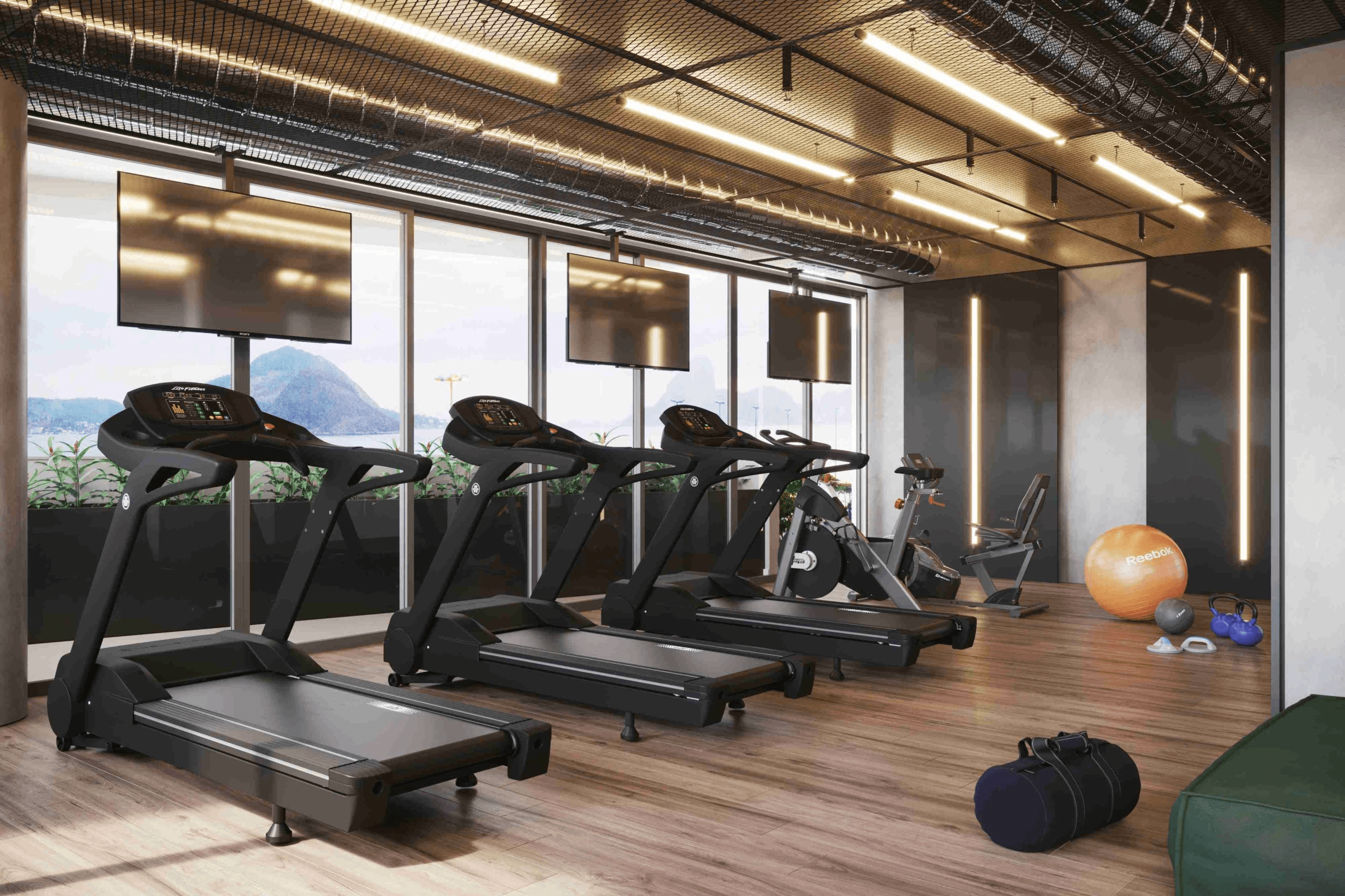 Para os empreendimentos com espaços disponíveis, os arquitetos devem projetar espaços amplos, se possível integrando o ambiente externo e aliando a tecnologia à prática dos exercícios.