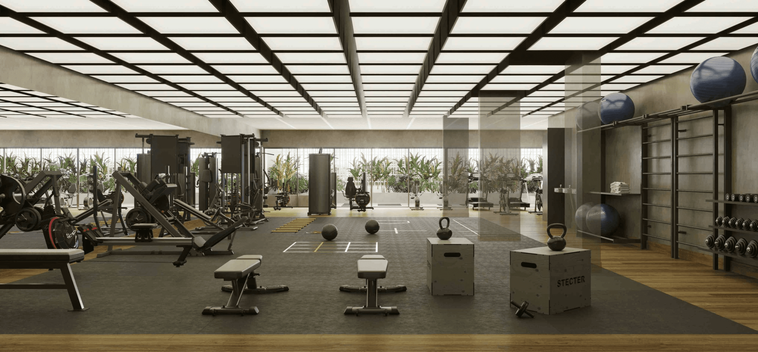 Já para os apartamentos ou casas, nossa dica é que você contemple a proposta no momento de apresentar o seu projeto. Por exemplo, na varanda, demonstre como o espaço pode ser usado pra praticar exercícios.